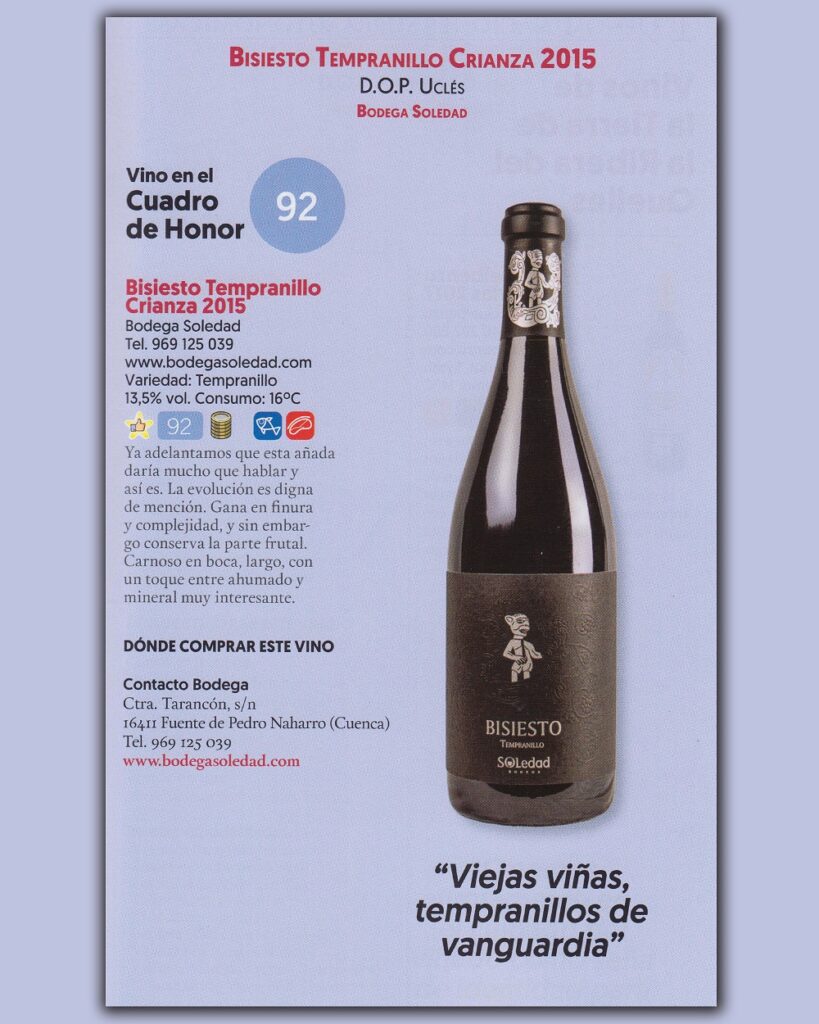 Bisiesto Tempranillo 2015 ha sido seleccionado para el cuadro de honor de la 12ª edición de la guía del vino cotidiano alcanzando los 92 puntos, una de las puntuaciones más altas para los vinos de Castilla-La Mancha.