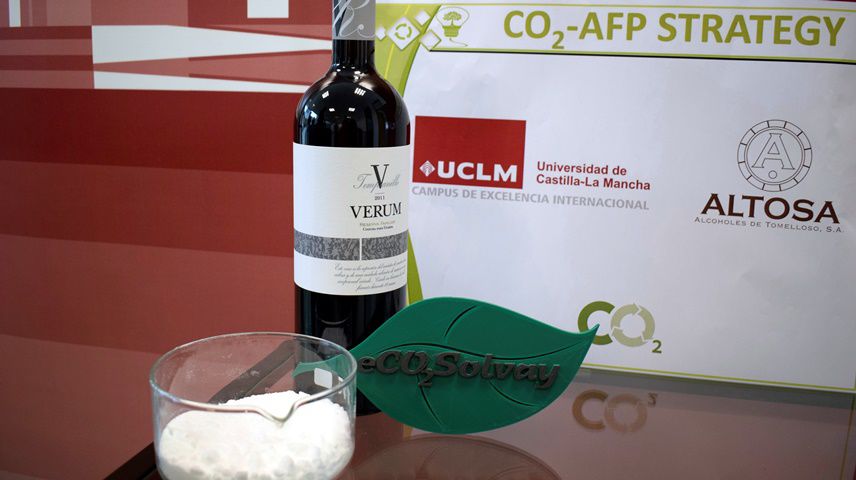 Un grupo de investigadores de la Universidad de Castilla-La Mancha ha trabajado durante tres años en el proyecto ‘CO2-AFP Strategy” en colaboración con la división de vinos de ALTOSA (Alcoholes Tomelloso, S.A.). Bodegas Verum, sección de vinos Premium, albergará la bodega demostrativa de este novedoso desarrollo para producir carbonato de sodio de manera sostenible, y con ello la eliminación de las emisiones a la atmósfera, lo que le podría convertir en la primera bodega con emisiones negativas de CO2 del mundo en el proceso de elaboración.