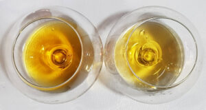 - El destilado es blanco, translucido. El color lo toma de la oxidación a la que está expuesto durante la crianza en barricas. La legislación es muy laxa, sin marcar límites claros de adición de azúcares (principalmente caramelo) para hacerlo más fácil de beber y oscurecerlo, si bien, más color no significa más envejecimiento.