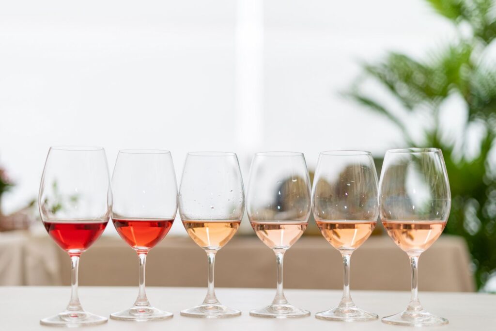 El color del rosado depende de la elaboración y la variedad, pero en el vino también hay modas y el color que se lleva es el rosa pálido, el estilo provenzal. En esta paleta de colores verás las tonalidades, todas válidas que dependerán del estilo que quiera marcar el enólogo.