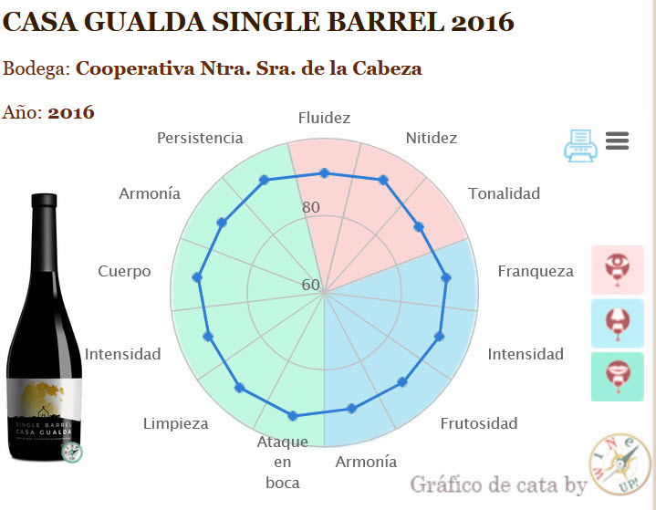 Bajo estas premisas, la coop. Ntra. Sra. de la Cabeza, conocida por su marca CASA GUALDA, ha venido trabajando por la calidad en sus vinos con un impulso renovado en los últimos años, muestra de ello es este vino premium, la demostración de que grandes bodegas/cooperativas pueden elaborar pequeñas producciones y buscar la singularidad en sus vinos.