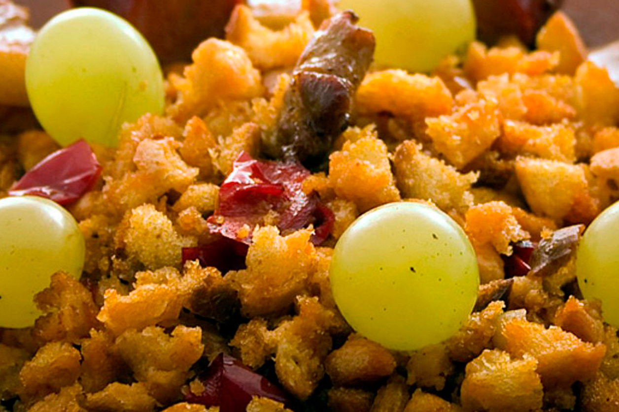 - Migas manchegas + Corambres de Selección Lucendo, un cencibel de corte moderno: En una cocina de aprovechamiento, las migas pueden que sea la mayor representación, pues cocinaban el pan cuando estaba tan duro que no se podía comer, y el vino que formaba parte de la alimentación, con un cencibel» del lugar, de viñedos que representan la historia de Valdepeñas.